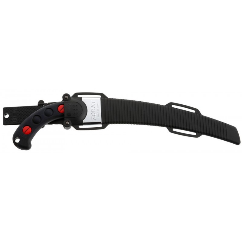 Alle Zübat Astsägen sind mit einem leichtgewichtigen Polypropylen Köcher mit Gürtelschlaufe ausgerüstet. Der Köcher hat zwei Einschubroller, die den Köcher für die scharfen Zähne der Säge schützen. Die Unterseite ist teilweise geöffnet, damit Feuchtigkeit und Sägemehl herausfallen können.