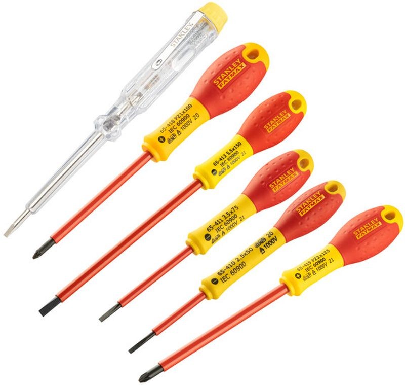 Stanley 0-65-443 FatMax VDE-Schraubendreher-Satz (Schlitz/Pozidriv/Tester), 6-teilig