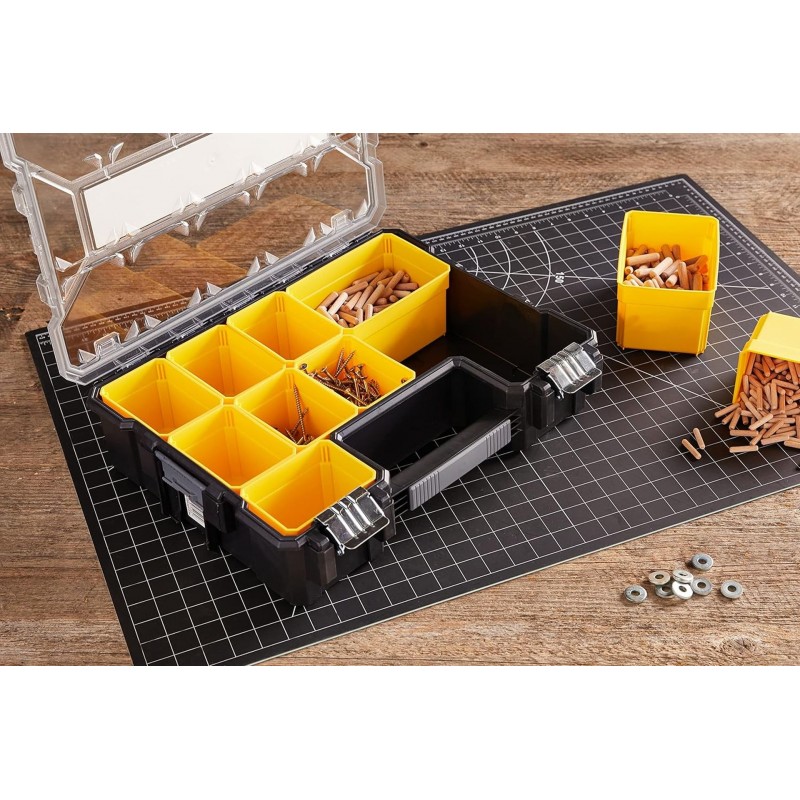 - VIELSEITIG: Bequeme Lagerung und Transport; mehrere STANLEY® Organizer können mit den seitlichen Kunststoffverschlüssen zusammengesteckt werden.