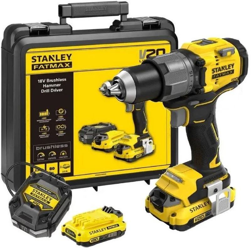 Stanley FatMax SFMCD725D2K-QW: 18V bürstenloser Akku-Bohrschrauber mit 80 Nm – 2× 2,0 Ah Akkus, Ladegerät, Koffer