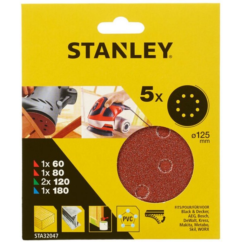 Stanley STA32047-XJ Schleifblatt für Exzenterschleifer 125mm, P60, P80, 2x P120, P180