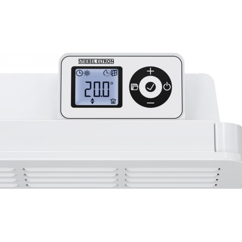 Dieser Konvektor von Stiebel Eltron lässt sich auch in kleine oder stärker möblierte Räume problemlos integrieren. Mit einer Tiefe von nur 100 mm benötigt er kaum Platz und sorgt dennoch für gleichmäßige und geräuschlose Wärme. Für hohen Bedienkomfort sorgt das Bedienelement mit hinterleuchtetem LCD-Display, eine Wochenzeitschaltuhr, ein Frostschutz, die Fenster-offen-Erkennung sowie eine adaptive Regelung mit Lernfunktion, die die Vorheizzeit automatisch berechnet. Zusätzlich ist das Gerät mit einem Ein-/Ausschalter und einer thermischen Sicherung für einen sicheren Betrieb ausgestattet.