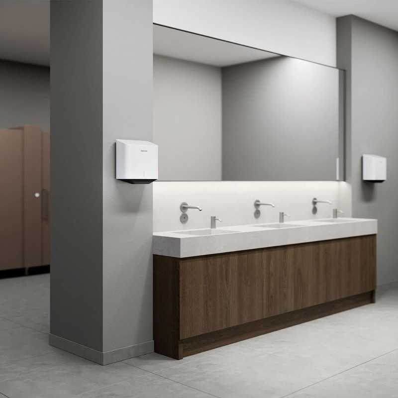 Die berührungslose, infrarotgesteuerte Bedienung des Händetrockners sorgt für einen sparsamen Betrieb und macht den Weg zu trockenen Händen gleichzeitig hygienischer. Dafür sorgen auch der HEPA-Filter und der integrierte Raumluftreiniger. Auf diese Weise verabschieden Sie sich in Ihren Sanitärräumen von Staub, Pollen, Bakterien und Viren.