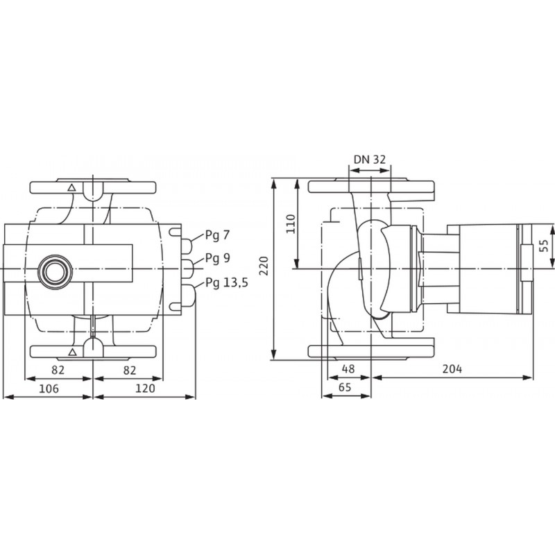 • Druckseitiger Rohranschluß: DN 32